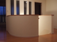 やさしい雰囲気がでるアール形状の壁で流れをだし・・・