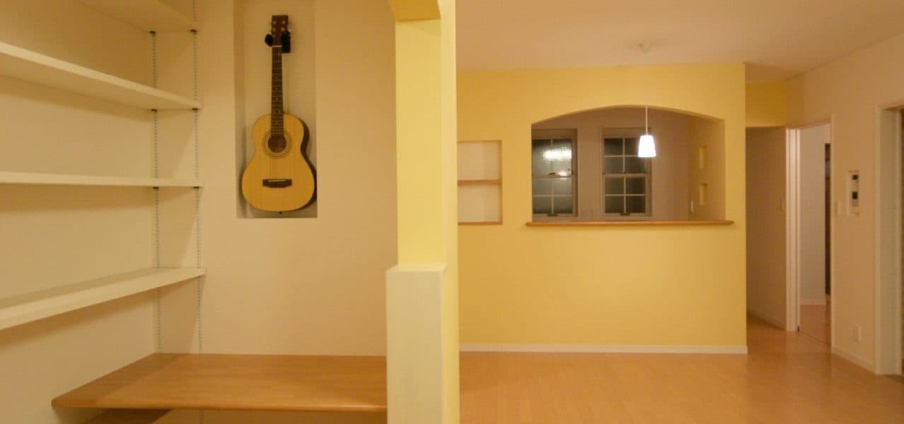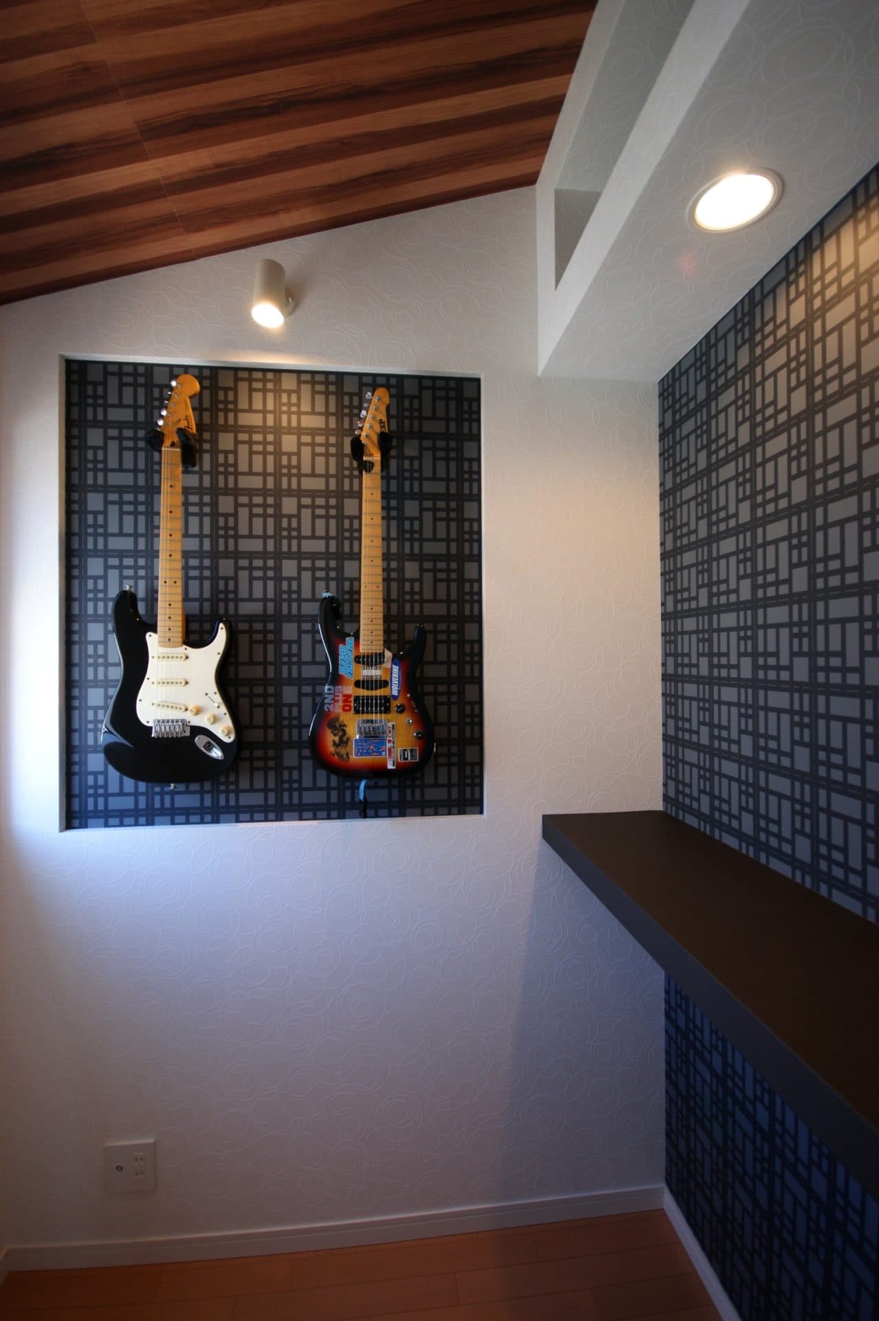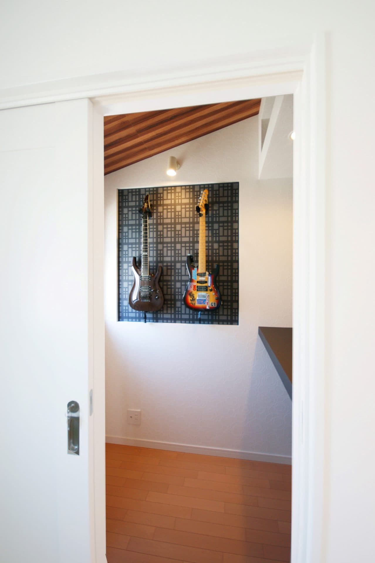 オリジナルCDもだされていたほどのキャリアをもつ ギタリストのご主人様専用ルーム 隠れ家のように、部屋のそのまた奥に位置する、ギターを飾っておくための趣味部屋です。